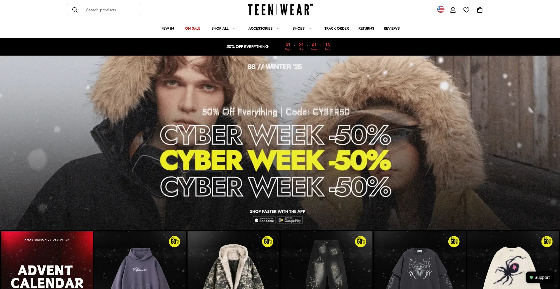 The website leverages popular product names and brands to attract traffic and generate user interest. These products may be offered through promotional campaigns or discount strategies designed to increase visitor engagement and conversion rates for us.teenwear.eu.