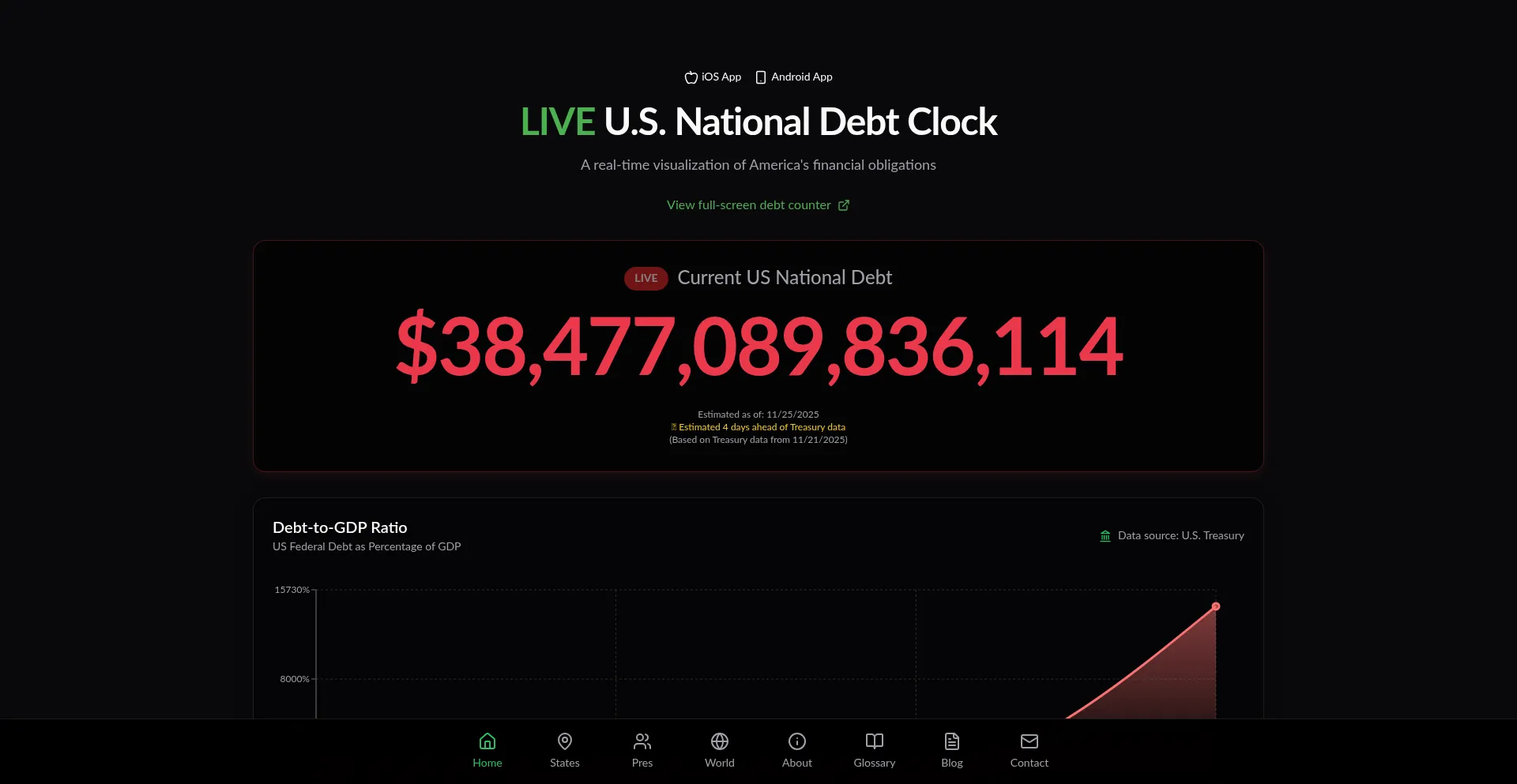 Track the US national debt in real-time with U.S. Debt Clock. Stay informed with expert analysis, visualizations, and insights on America's financial obligations.