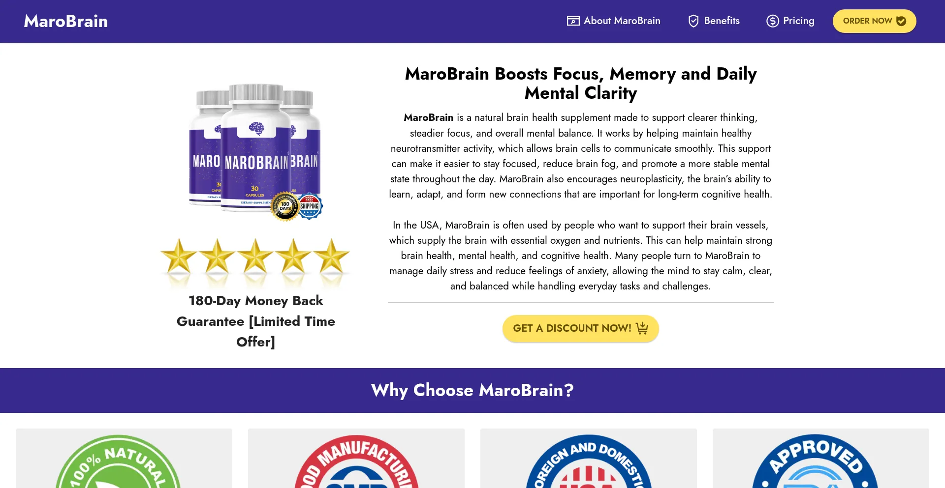 MaroBrain is a natural brain power supplement that supports brain health, enhances cognitive health, and boosts mental health for sharper focus and clarity.