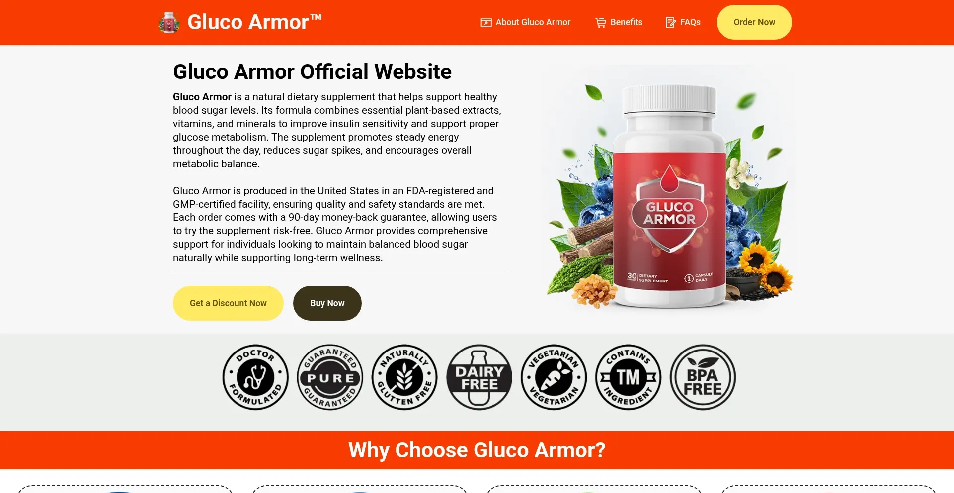 Gluco Armor supports healthy blood sugar, boosts energy, and improves insulin sensitivity naturally. Try Gluco Armor today with a 90-day money-back guarantee.