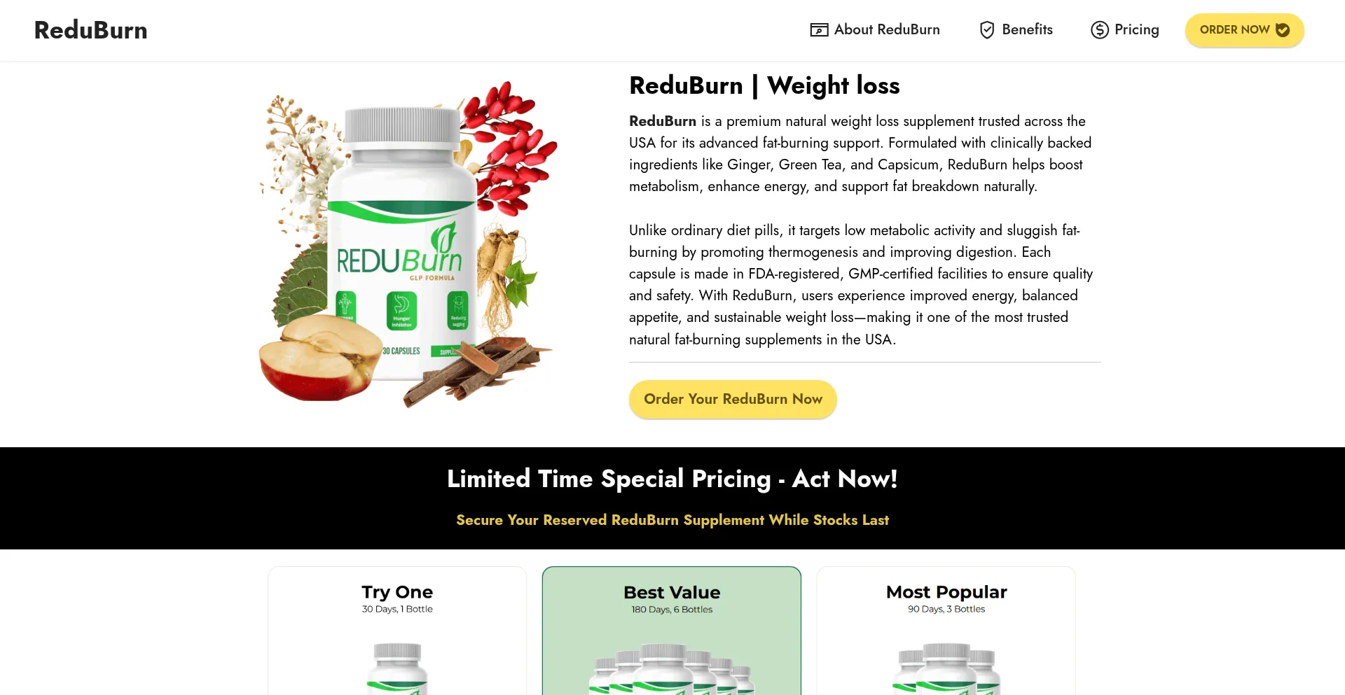ReduBurn is a trusted USA fat-burning supplement designed to boost metabolism, reduce cravings, and promote natural weight loss safely and effectively.