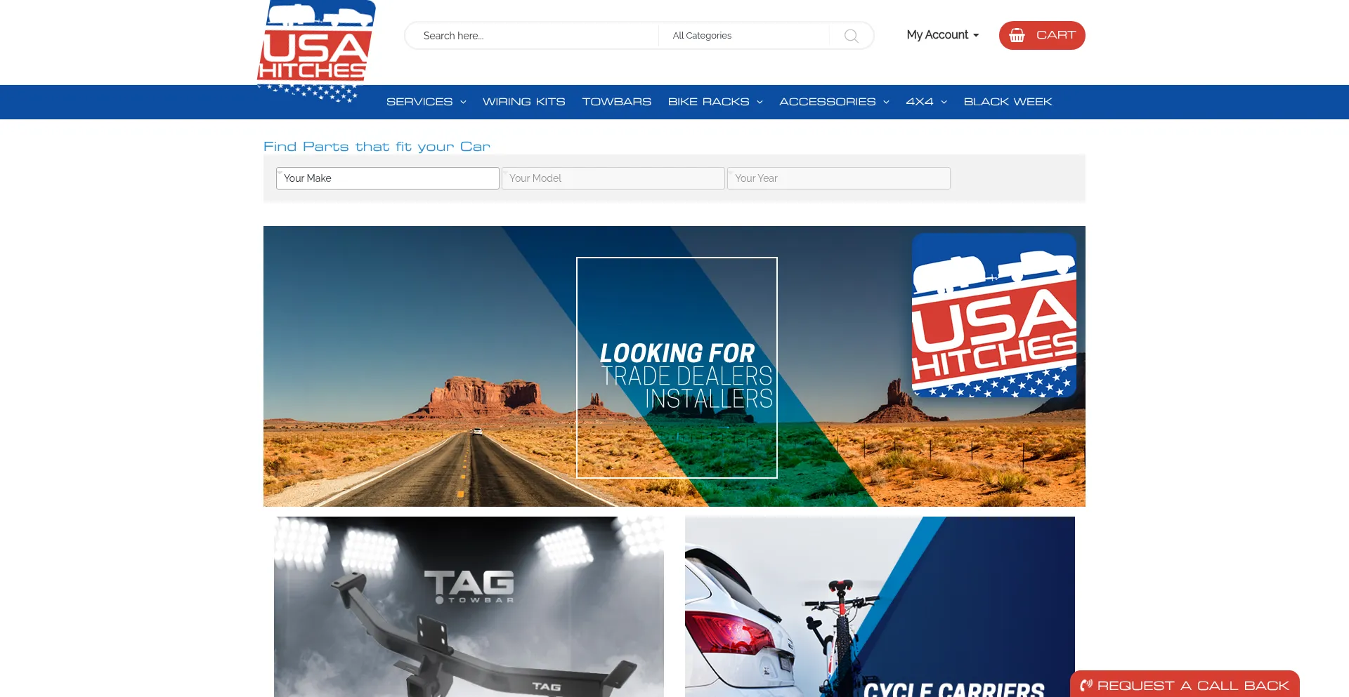 Analysis indicates that usahitches.com operates as an e-commerce platform facilitating online transactions for goods or services. The website implements shopping cart functionality, payment processing systems, and product catalog features typical of commercial retail operations.