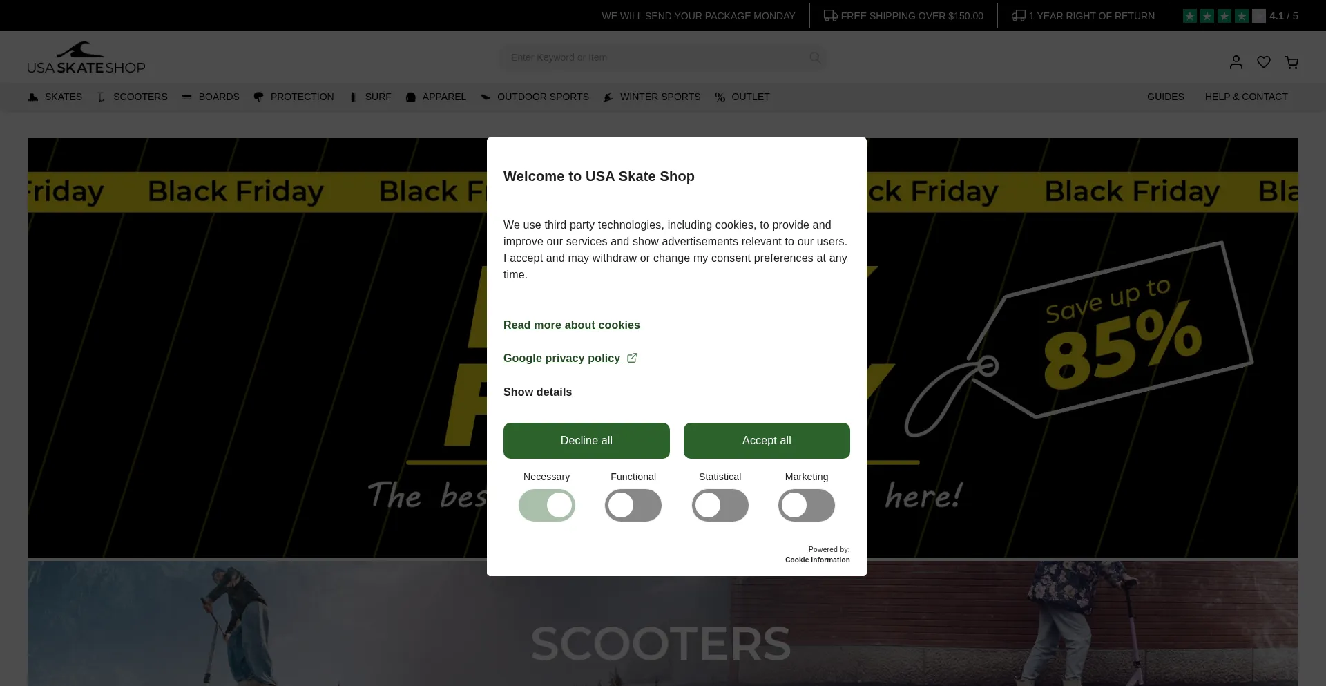 The website implements cookie consent mechanisms in compliance with privacy regulations such as GDPR or CCPA. This demonstrates that usaskateshop.com adheres to data protection standards and provides users with control over personal data collection practices.