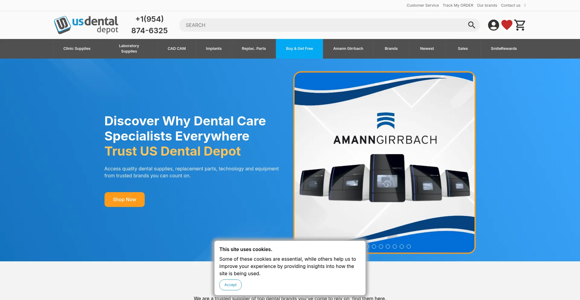 usdentaldepot.com uses Bootstrap, a widely-adopted open-source framework for responsive web development. Bootstrap enables efficient creation of mobile-friendly interfaces through standardized components and styling.