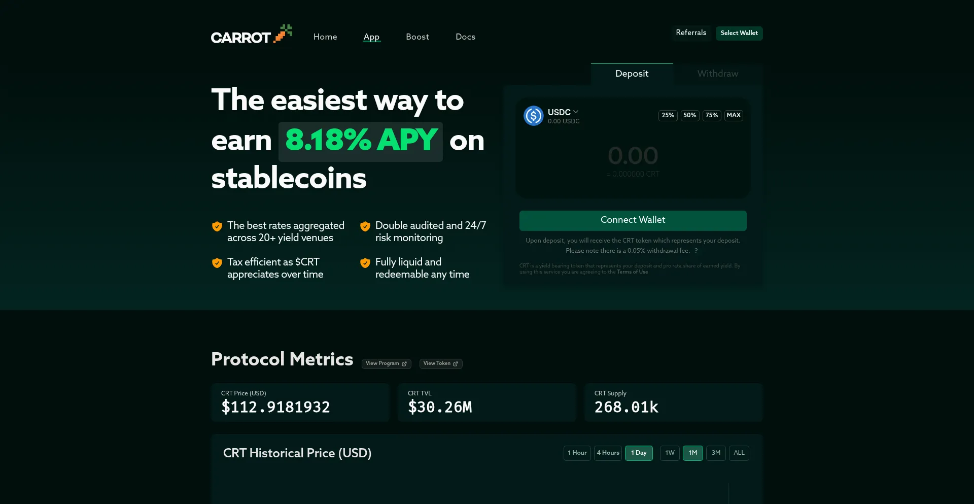 Upon deposit, you will receive the CRT token which represents your deposit.