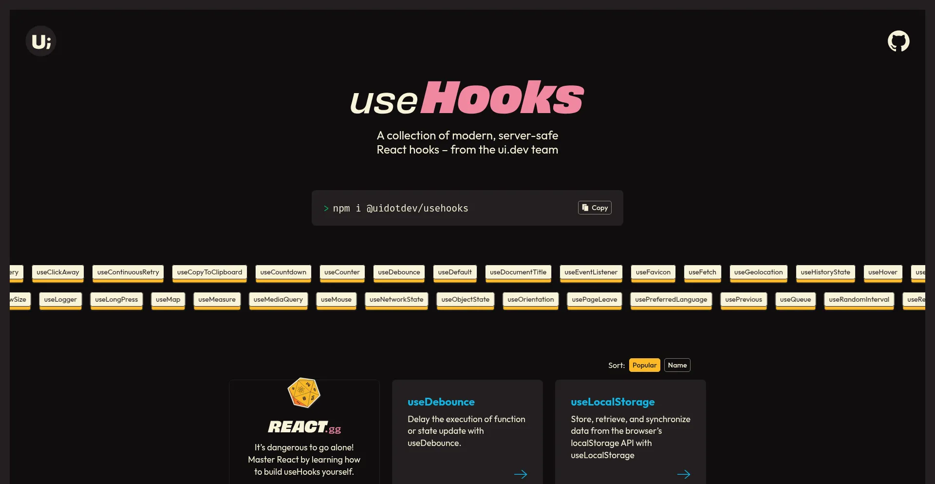A collection of modern, server-safe React hooks – from the ui.dev team