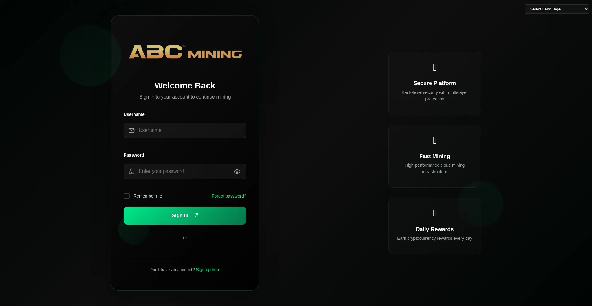 The user.abcmining.pro probably offers cloud mining services or cryptocurrency mining investments. Some platforms provide legitimate mining rental services, while others may use fake mining dashboards to display virtual earnings that cannot be withdrawn.