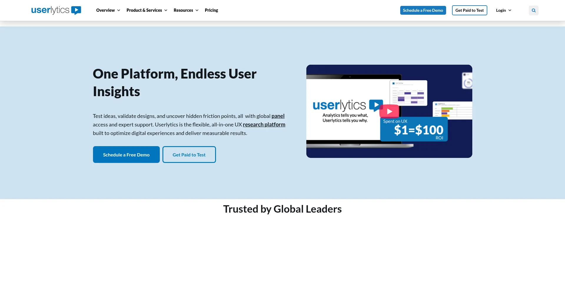 Remote user testing with Userlytics. Get real customer feedback and improve UX and usability for your website, app, or digital experience.