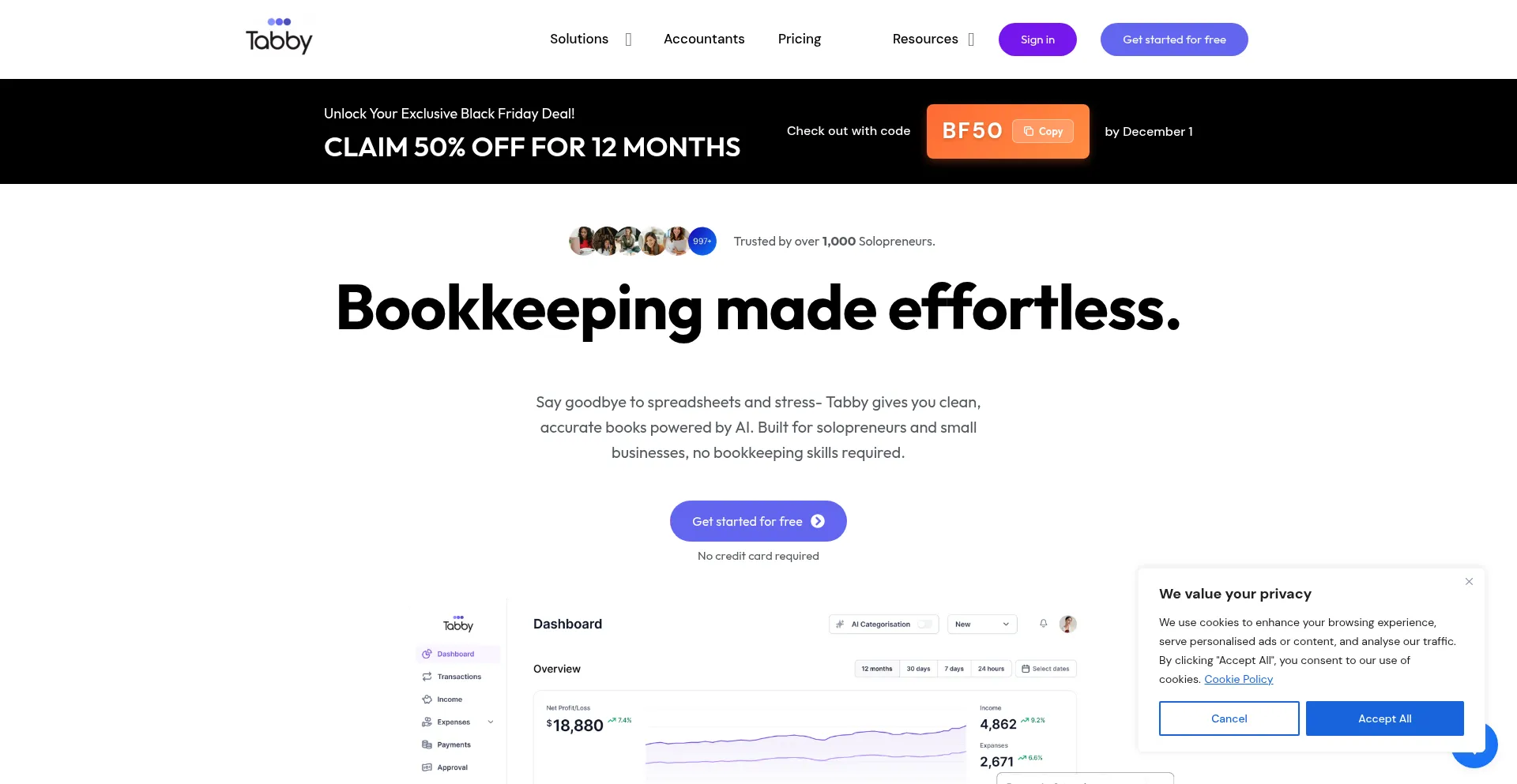 The website implements cookie consent mechanisms in compliance with privacy regulations such as GDPR or CCPA. This demonstrates that usetabby.com adheres to data protection standards and provides users with control over personal data collection practices.