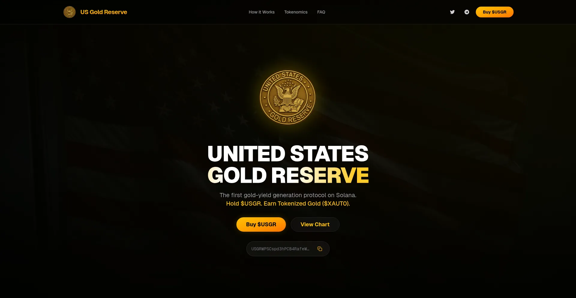 United States Gold Reserve ($USGR) - A gold-backed cryptocurrency on Solana. 5% tax with 75% redistributed in $XAUT0. Join the future of digital gold reserves.