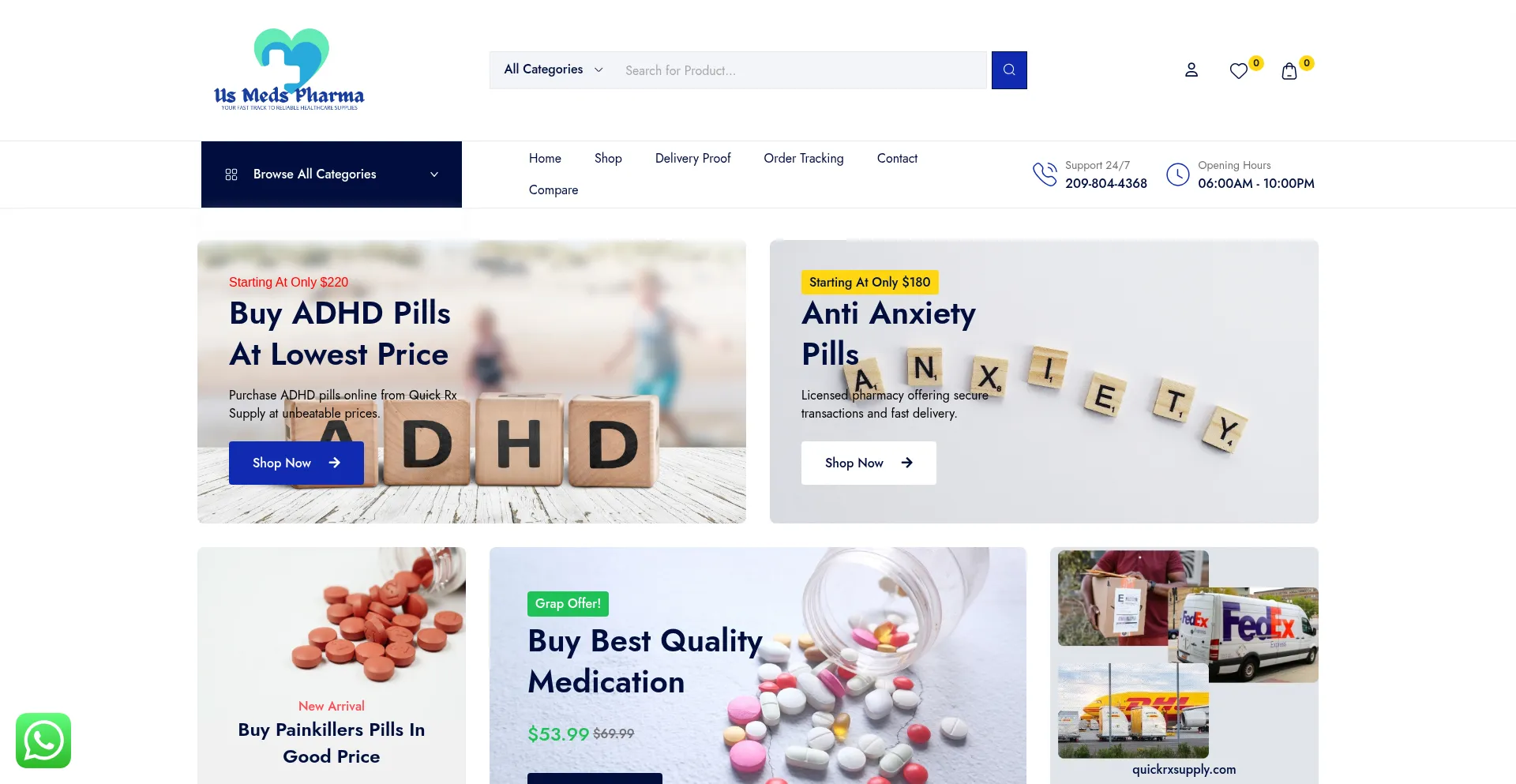 Analysis indicates that usmedspharma.com operates as an e-commerce platform facilitating online transactions for goods or services. The website implements shopping cart functionality, payment processing systems, and product catalog features typical of commercial retail operations.