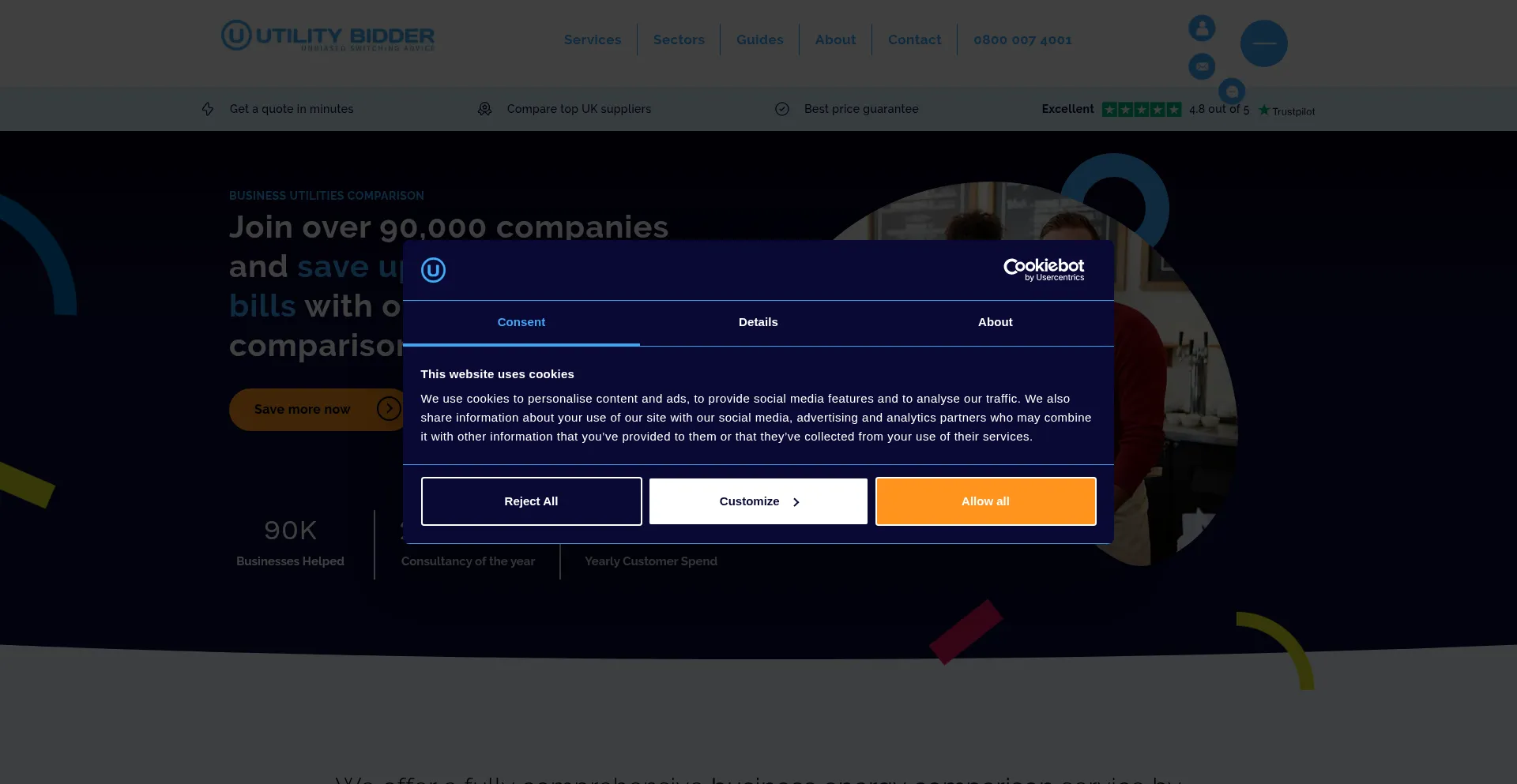 The website implements cookie consent mechanisms in compliance with privacy regulations such as GDPR or CCPA. This demonstrates that utilitybidder.co.uk adheres to data protection standards and provides users with control over personal data collection practices.