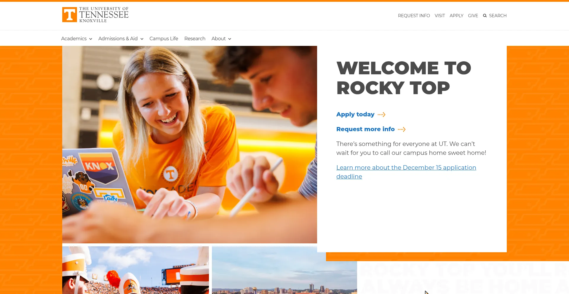 There's something for everyone at the University of Tennessee, Knoxville. We can't wait for you to call our campus home sweet home!