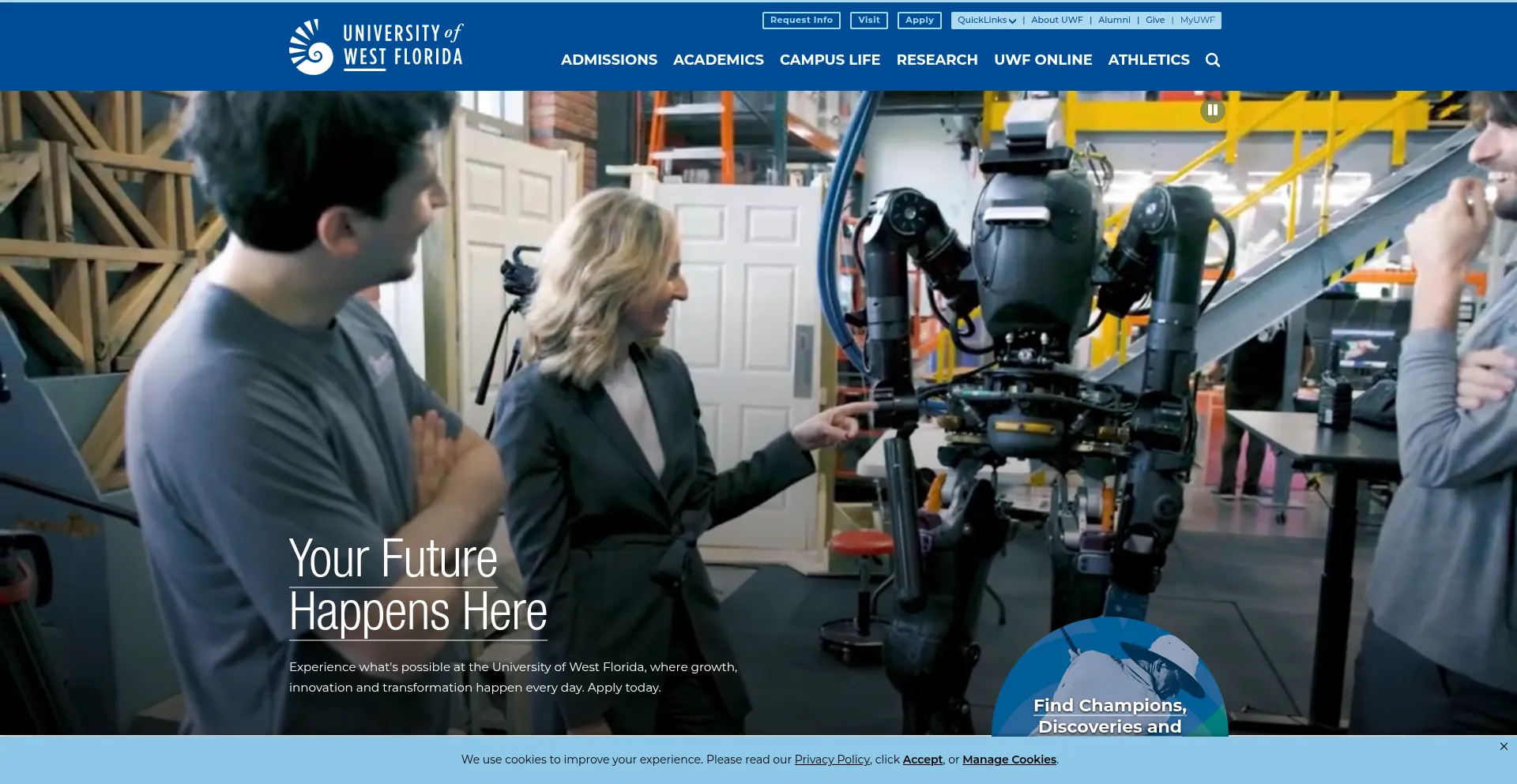 The website implements cookie consent mechanisms in compliance with privacy regulations such as GDPR or CCPA. This demonstrates that uwf.edu adheres to data protection standards and provides users with control over personal data collection practices.