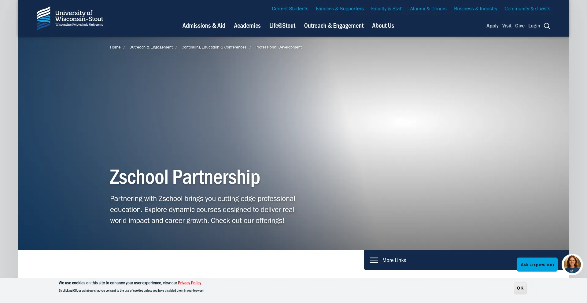 The website implements cookie consent mechanisms in compliance with privacy regulations such as GDPR or CCPA. This demonstrates that uwstout.education adheres to data protection standards and provides users with control over personal data collection practices.