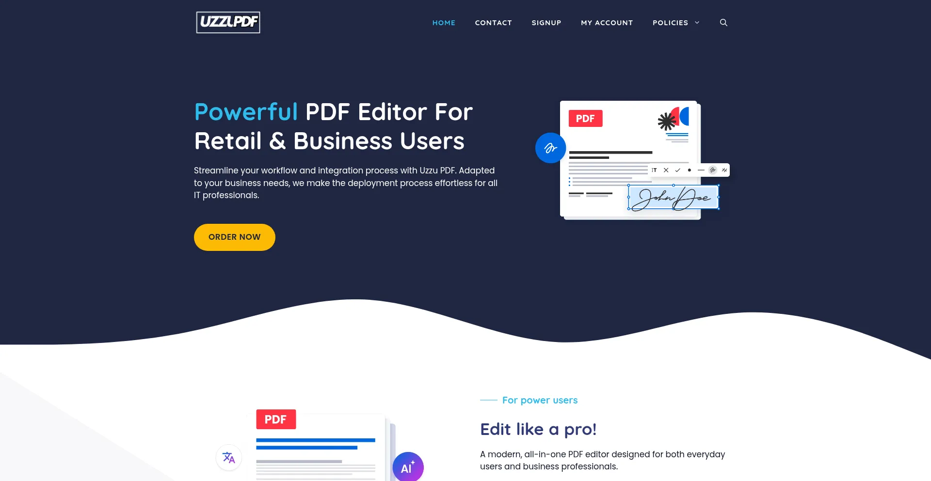 Analysis indicates that uzzupdf.com operates as an e-commerce platform facilitating online transactions for goods or services. The website implements shopping cart functionality, payment processing systems, and product catalog features typical of commercial retail operations.
