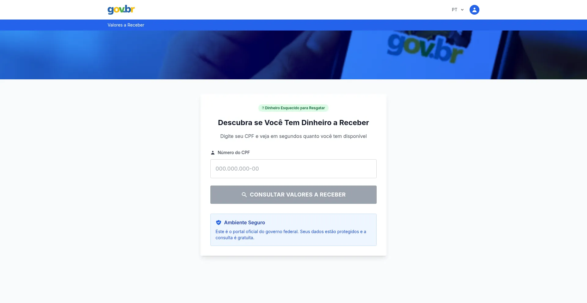 Acesse os serviços do governo federal de forma simples e segura. Consulte valores disponíveis para saque e indenizações.
