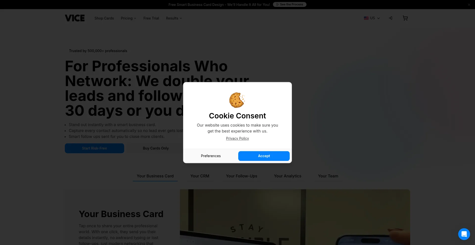 The website implements cookie consent mechanisms in compliance with privacy regulations such as GDPR or CCPA. This demonstrates that v1ce.co adheres to data protection standards and provides users with control over personal data collection practices.