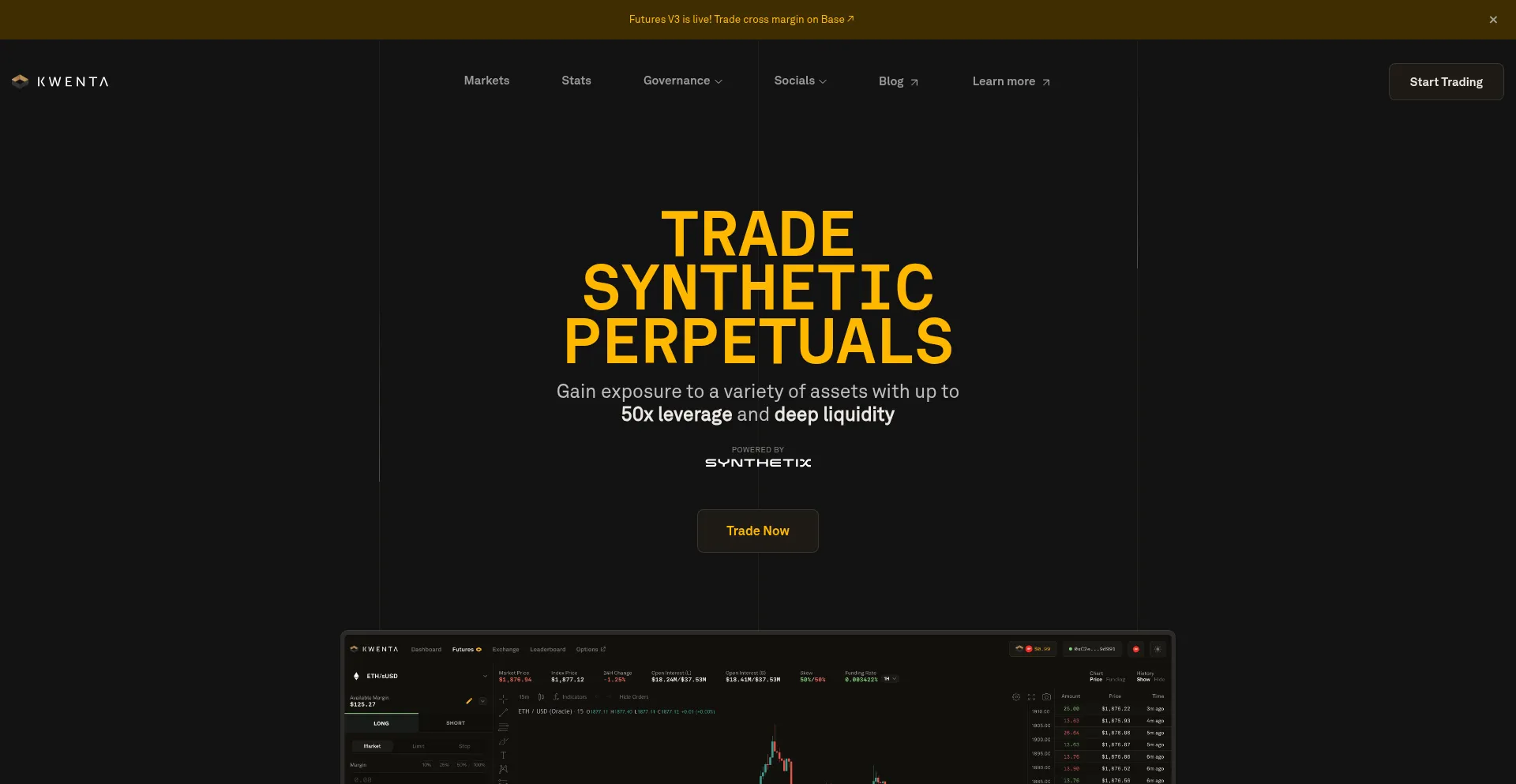 The v2.kwenta.io website references cryptocurrency transactions or educational content related to digital assets such as Bitcoin, Ethereum, or other blockchain-based currencies. Users should exercise caution as cryptocurrency transactions are irreversible and the decentralized nature of these assets provides limited recourse for fraudulent activities.
