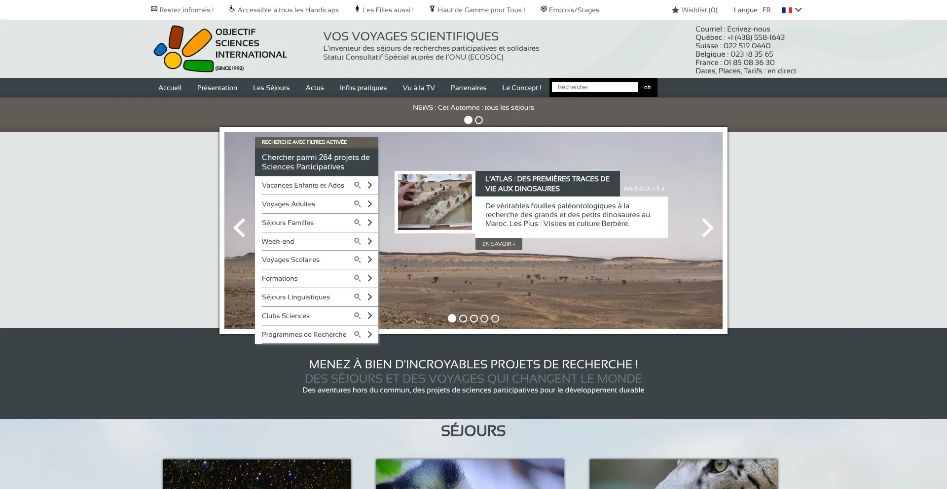 <p>Vacances Scientifiques et Sciences Participatives d’Objectif Sciences International en France, Suisse, Québec, à Tahiti, au Japon, au Pérou, au Viet-Nam et en Asie Centr...