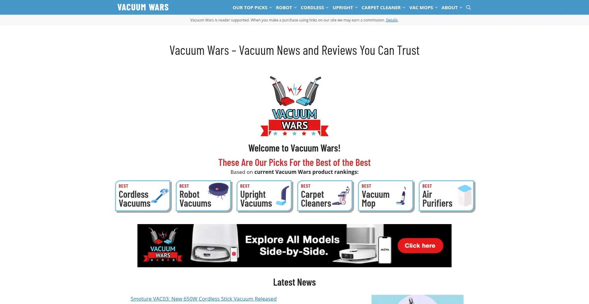 Vacuum Wars is your premier source for unbiased, independent reviews and top picks for best cordless vacuums, best robot vacuums, best upright vacuums and more!