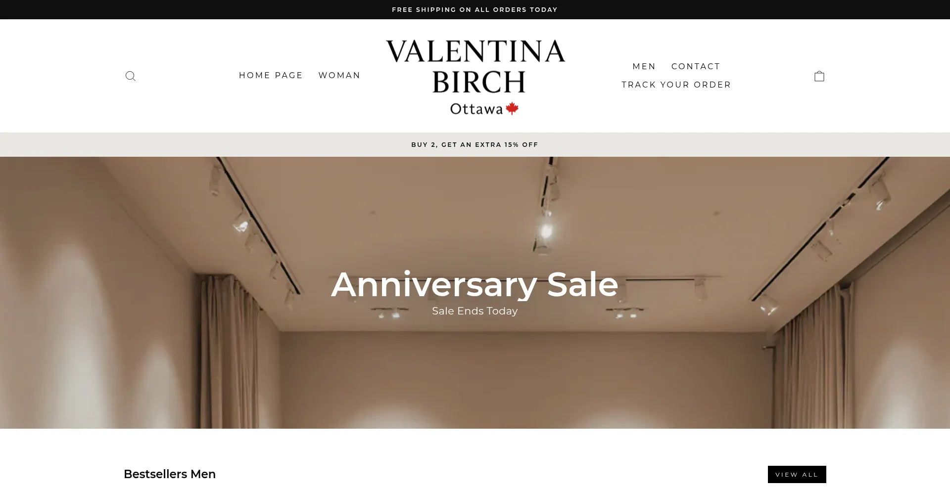Analysis indicates that valentinabirch.com operates as an e-commerce platform facilitating online transactions for goods or services. The website implements shopping cart functionality, payment processing systems, and product catalog features typical of commercial retail operations.