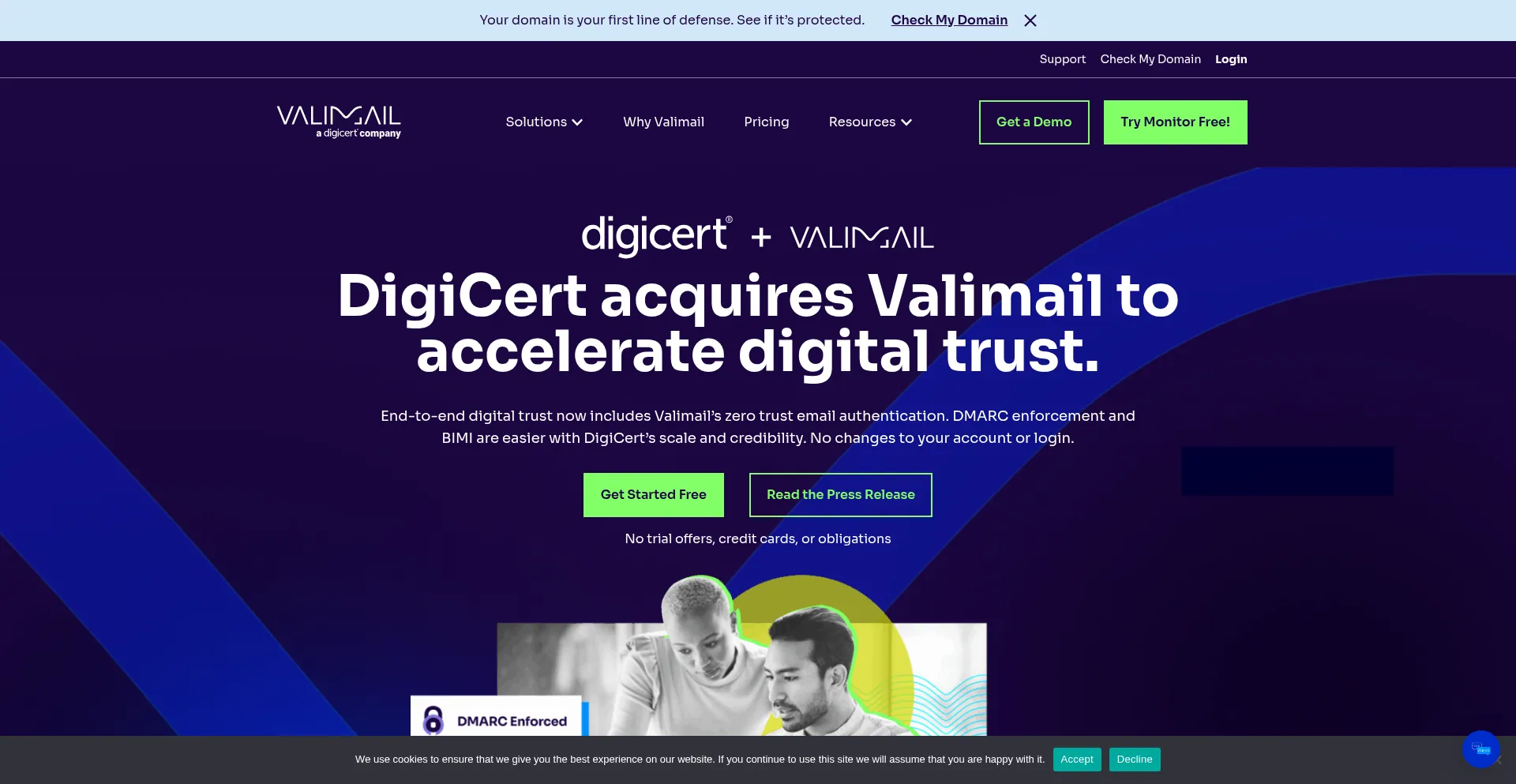 The website implements cookie consent mechanisms in compliance with privacy regulations such as GDPR or CCPA. This demonstrates that valimail.com adheres to data protection standards and provides users with control over personal data collection practices.