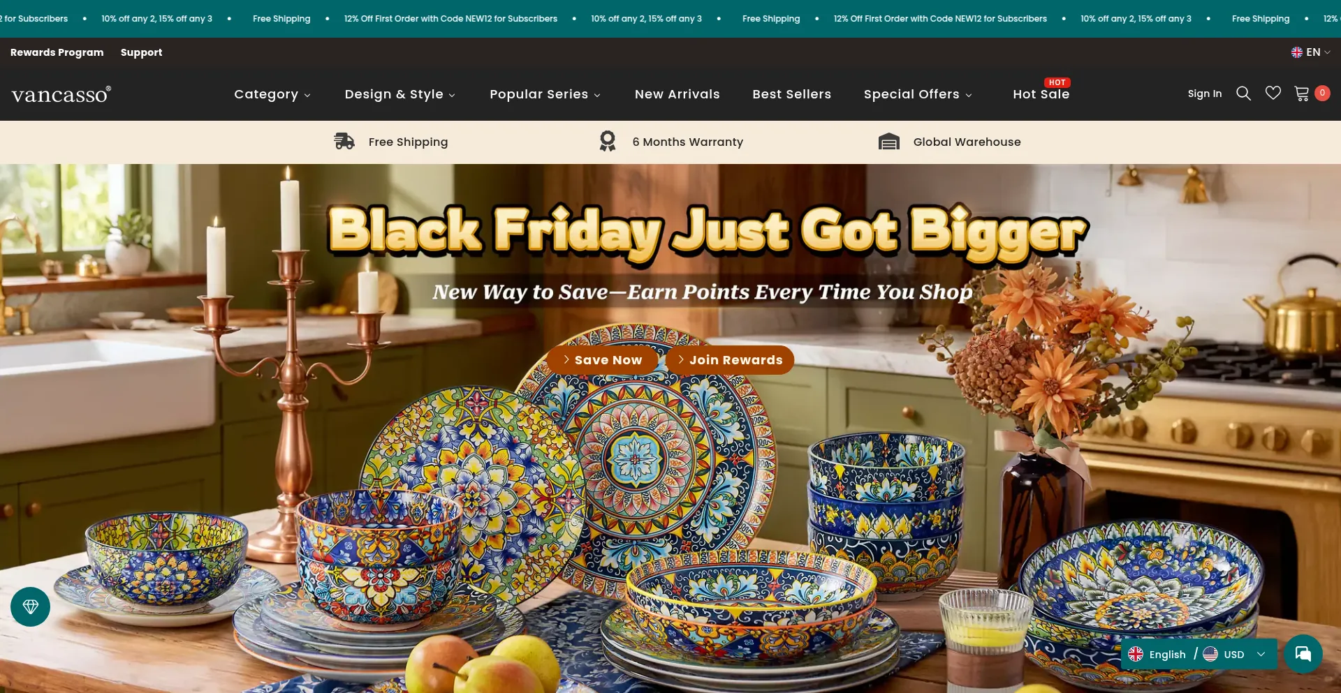 Our analyzer determines that website vancassotableware.com is using Shopify CMS. Shopify is a popular e-commerce platform, powering around 4.4% of websites globally.