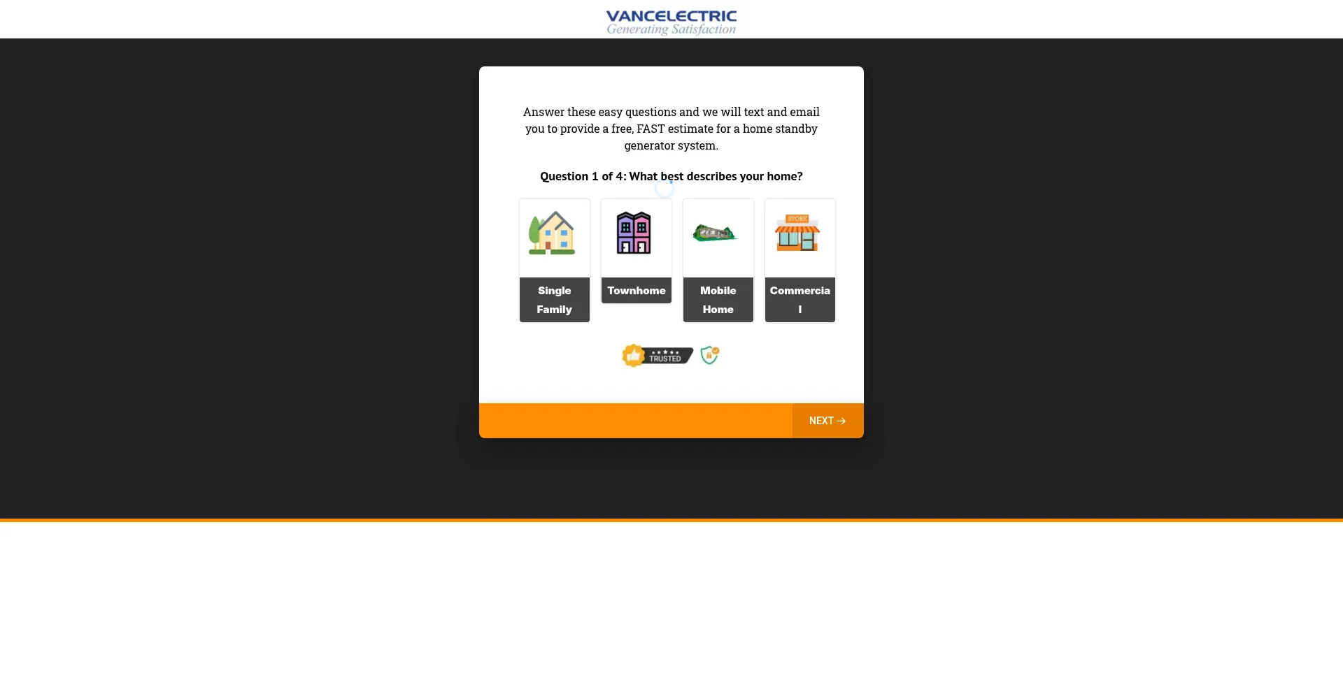 Answer these easy questions and we will text and email you to provide a free, FAST estimate for a home standby generator system.