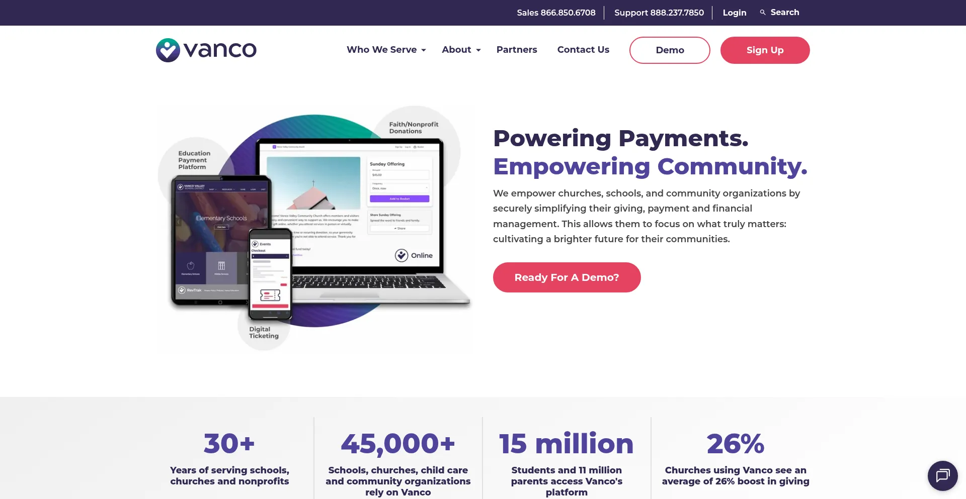 Vanco’s simple online payment processing services and giving app make it easy to give when and where you want.