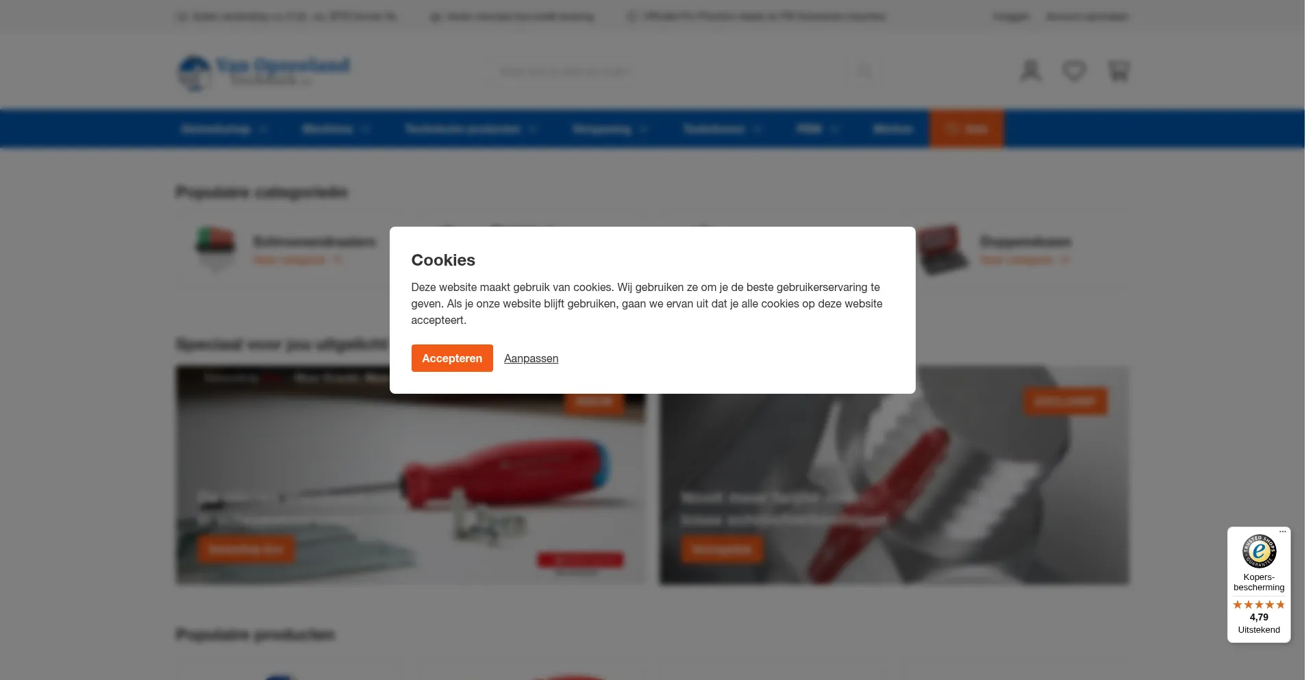 Analysis indicates that vanopzeelandtechniek.nl operates as an e-commerce platform facilitating online transactions for goods or services. The website implements shopping cart functionality, payment processing systems, and product catalog features typical of commercial retail operations.