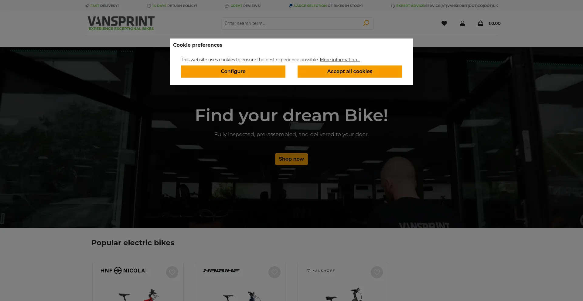 Find your Electric Bike at VanSprint. UK's e bike specialist with a wide range of affordable high quality e bikes.