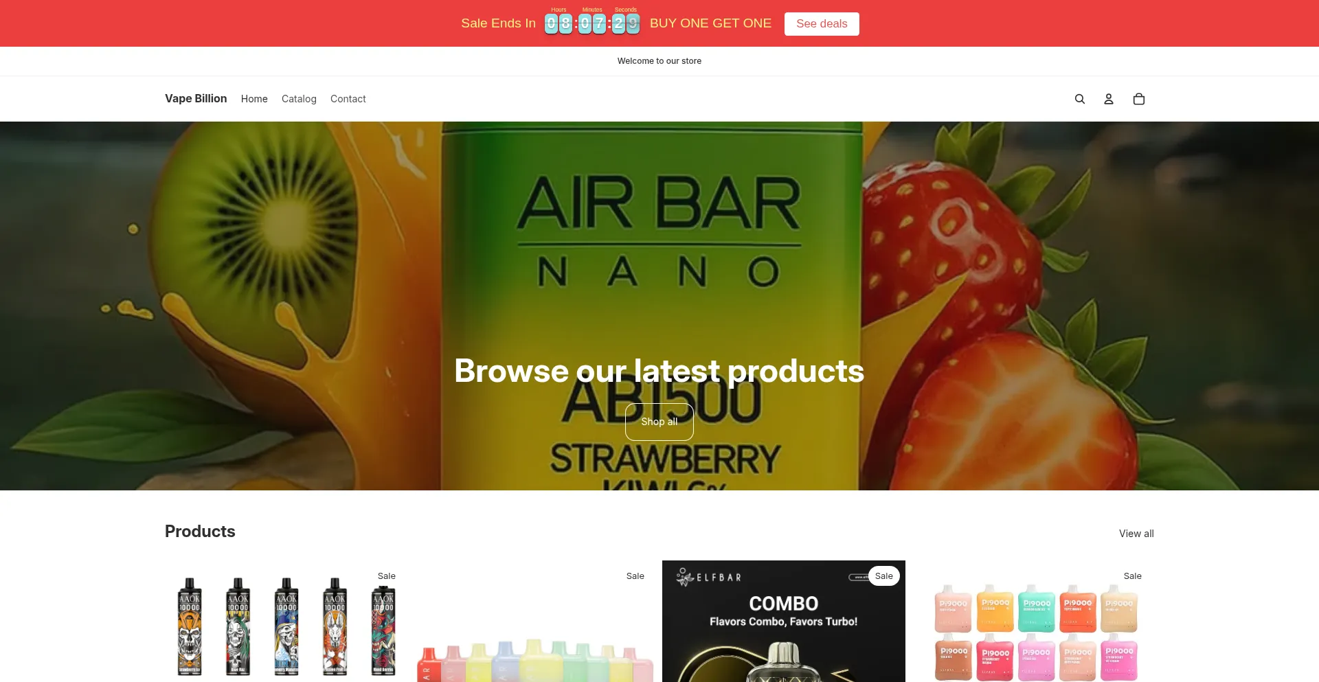 Analysis indicates that vapebillion.myshopify.com operates as an e-commerce platform facilitating online transactions for goods or services. The website implements shopping cart functionality, payment processing systems, and product catalog features typical of commercial retail operations.