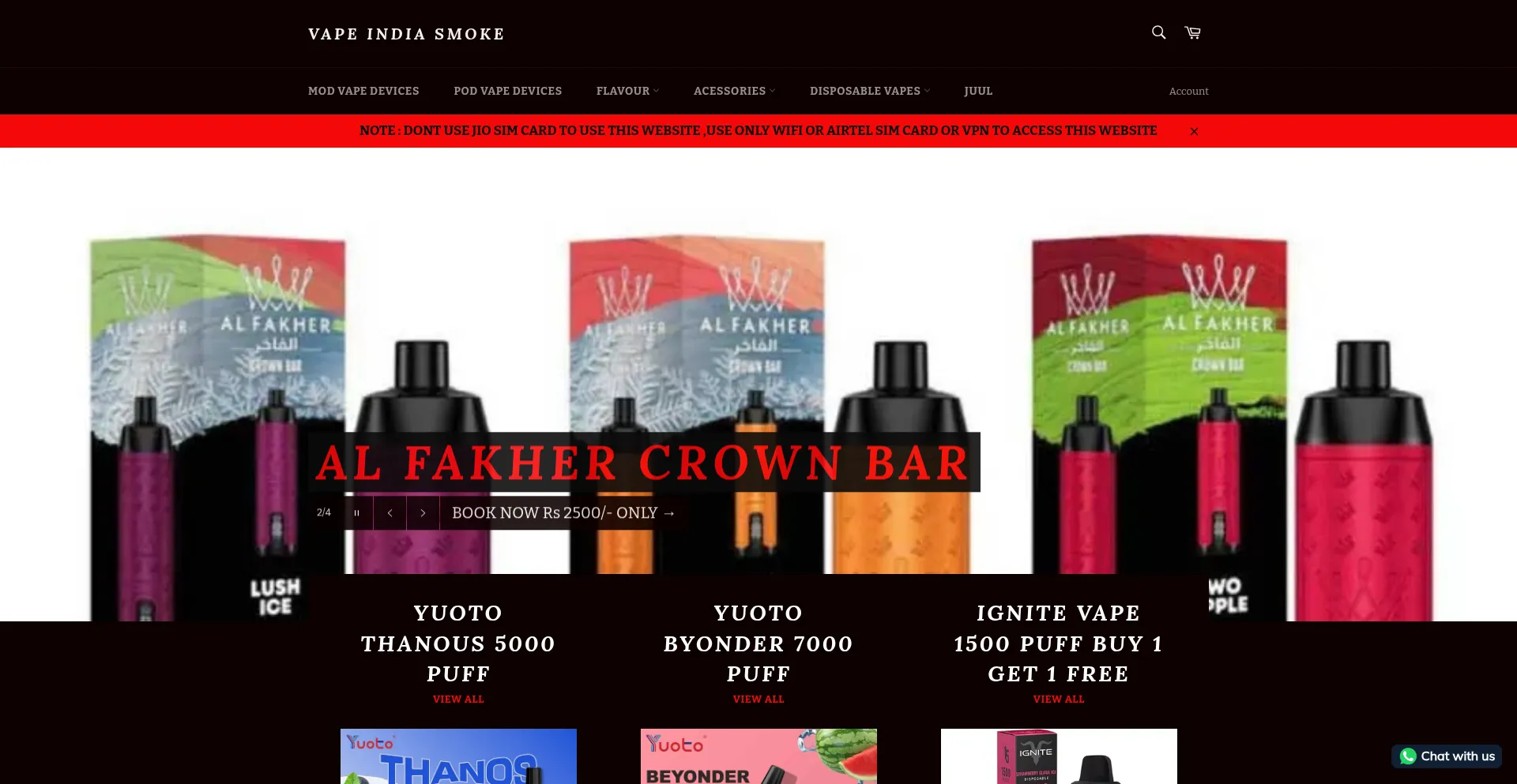 Analysis indicates that vapeindiasmokes.in operates as an e-commerce platform facilitating online transactions for goods or services. The website implements shopping cart functionality, payment processing systems, and product catalog features typical of commercial retail operations.