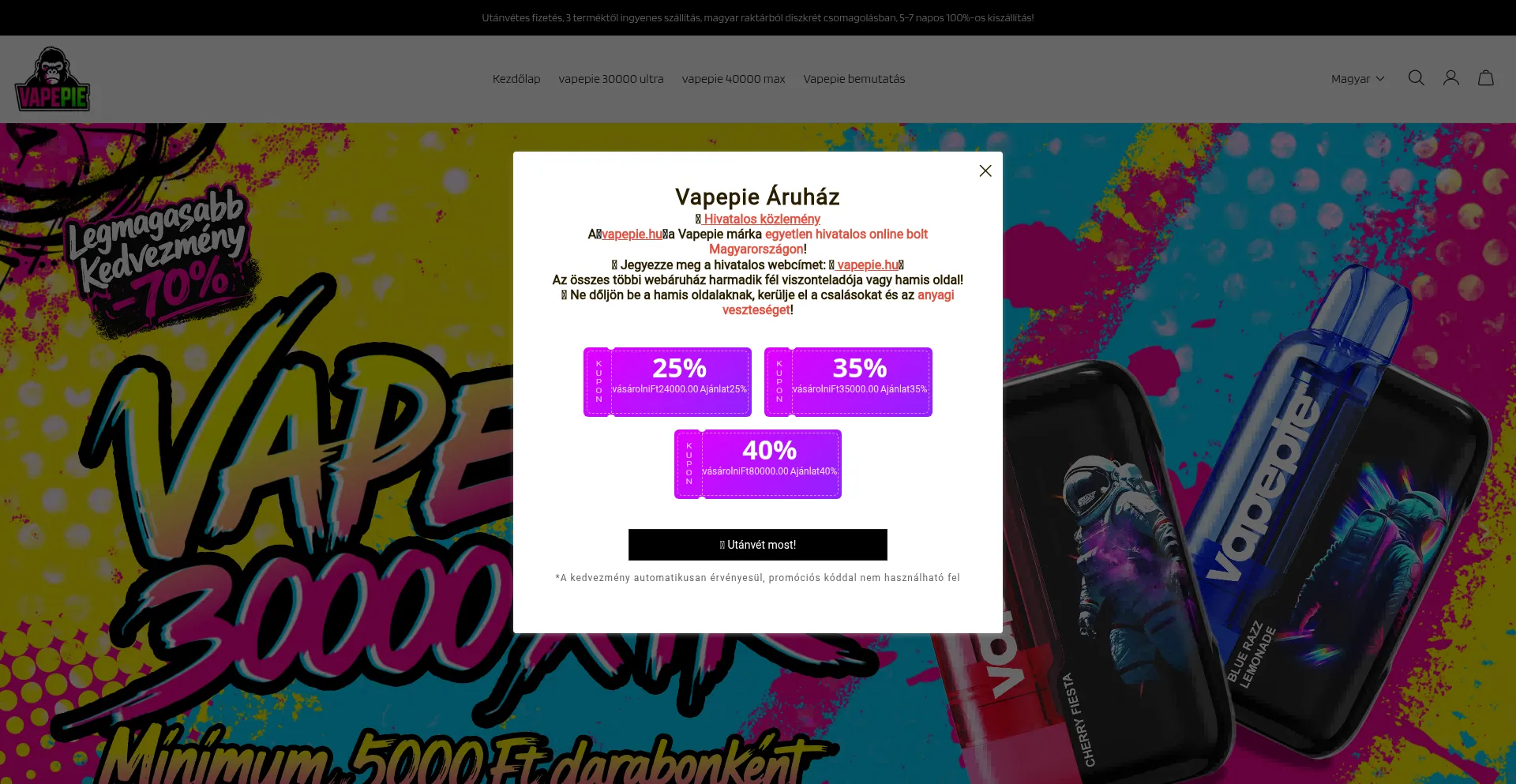 Vapepie Hivatalos Áruház Hungary - olcsó, különleges ár és ajánlat