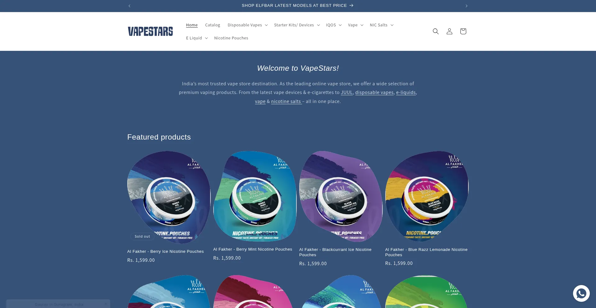Analysis indicates that vapestars.in operates as an e-commerce platform facilitating online transactions for goods or services. The website implements shopping cart functionality, payment processing systems, and product catalog features typical of commercial retail operations.