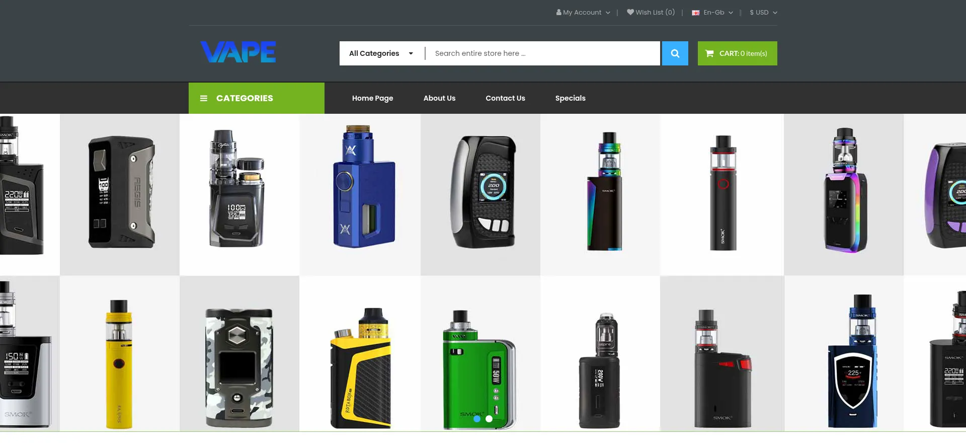 Vape Store: Shop a full selection of E-liquids, Vape Starter Kits, Vape Tanks, Vape Mods, Vape Batteries, Vape Coils, Vape Rebuildable Atomizers, Vape Accessories.