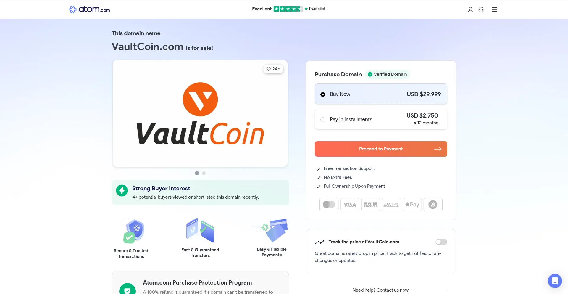 VaultCoin.com is available for sale on Atom. Buy this premium domain name and get a free logo. VaultCoin has strong buyer interest, so act now!