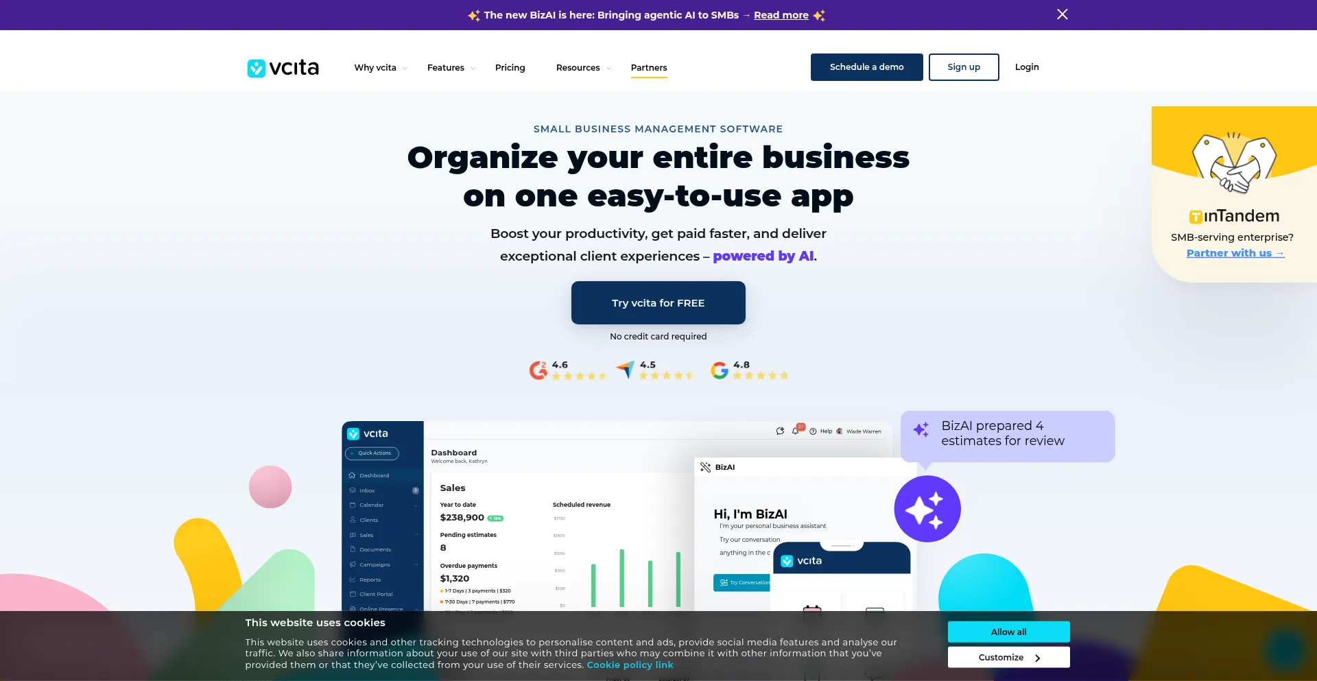 The website implements cookie consent mechanisms in compliance with privacy regulations such as GDPR or CCPA. This demonstrates that vcita.com adheres to data protection standards and provides users with control over personal data collection practices.