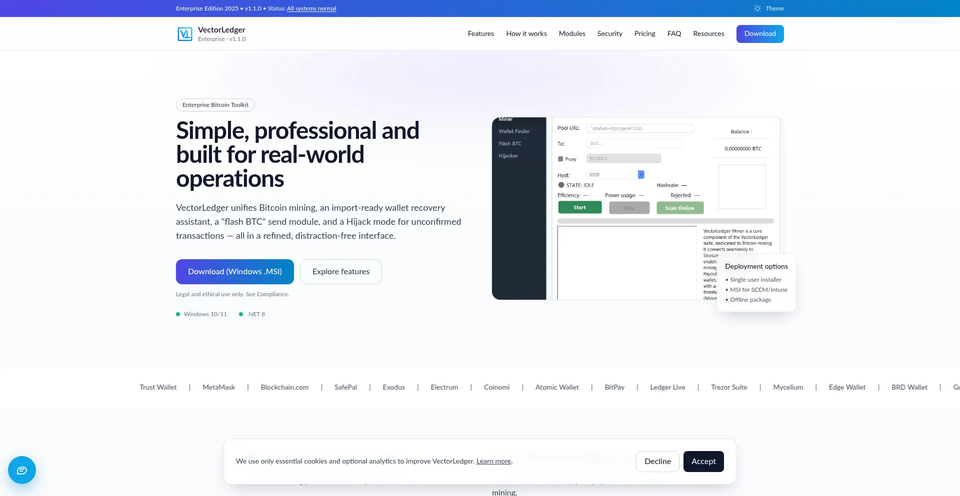 VectorLedger — Enterprise Edition 2025 v1.1.0 | ToolKit: Bitcoin Miner, Bitcoin Flasher, Wallet Finder, Unconfirmed Transaction Hijacker