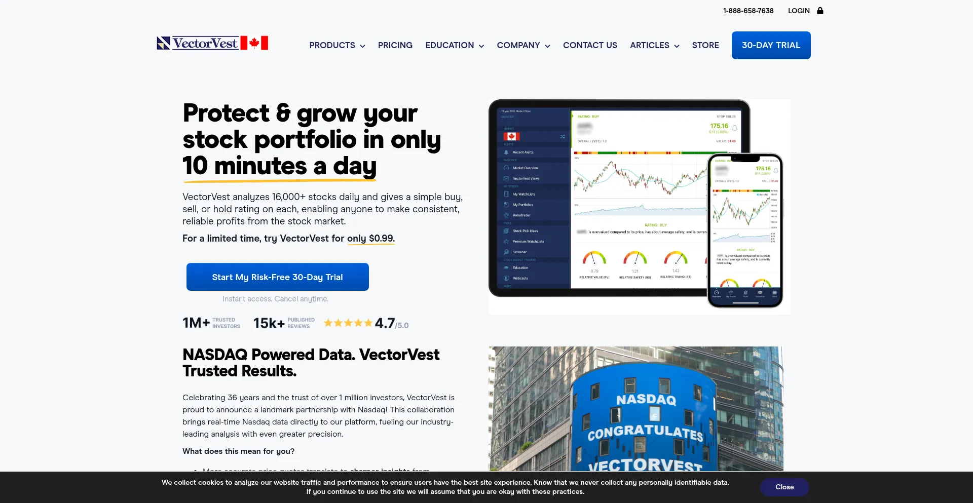 The website implements cookie consent mechanisms in compliance with privacy regulations such as GDPR or CCPA. This demonstrates that vectorvest.ca adheres to data protection standards and provides users with control over personal data collection practices.