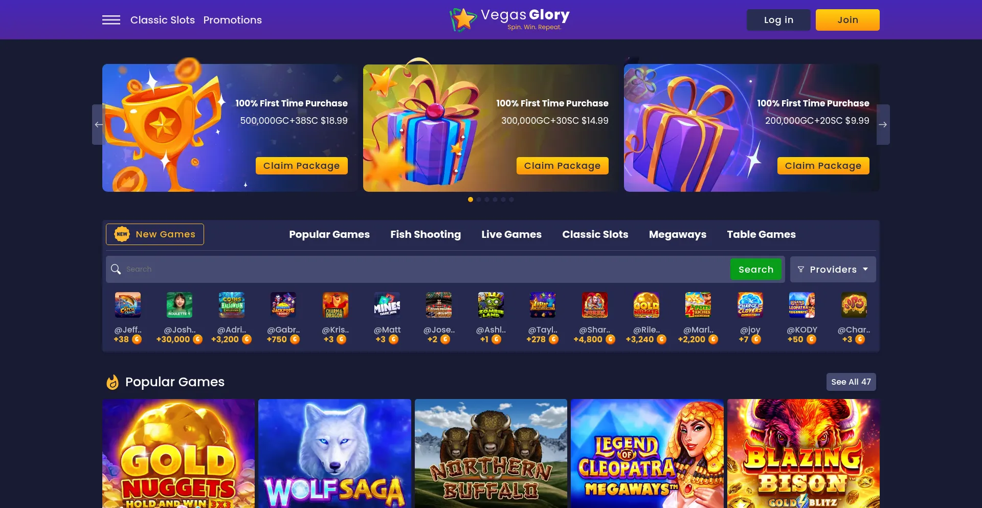 Join VegasGlory.com and experience the thrill of top-tier slot machines, exciting table games, and exclusive VegasGlory originals! With our incredible collection of games, endle...