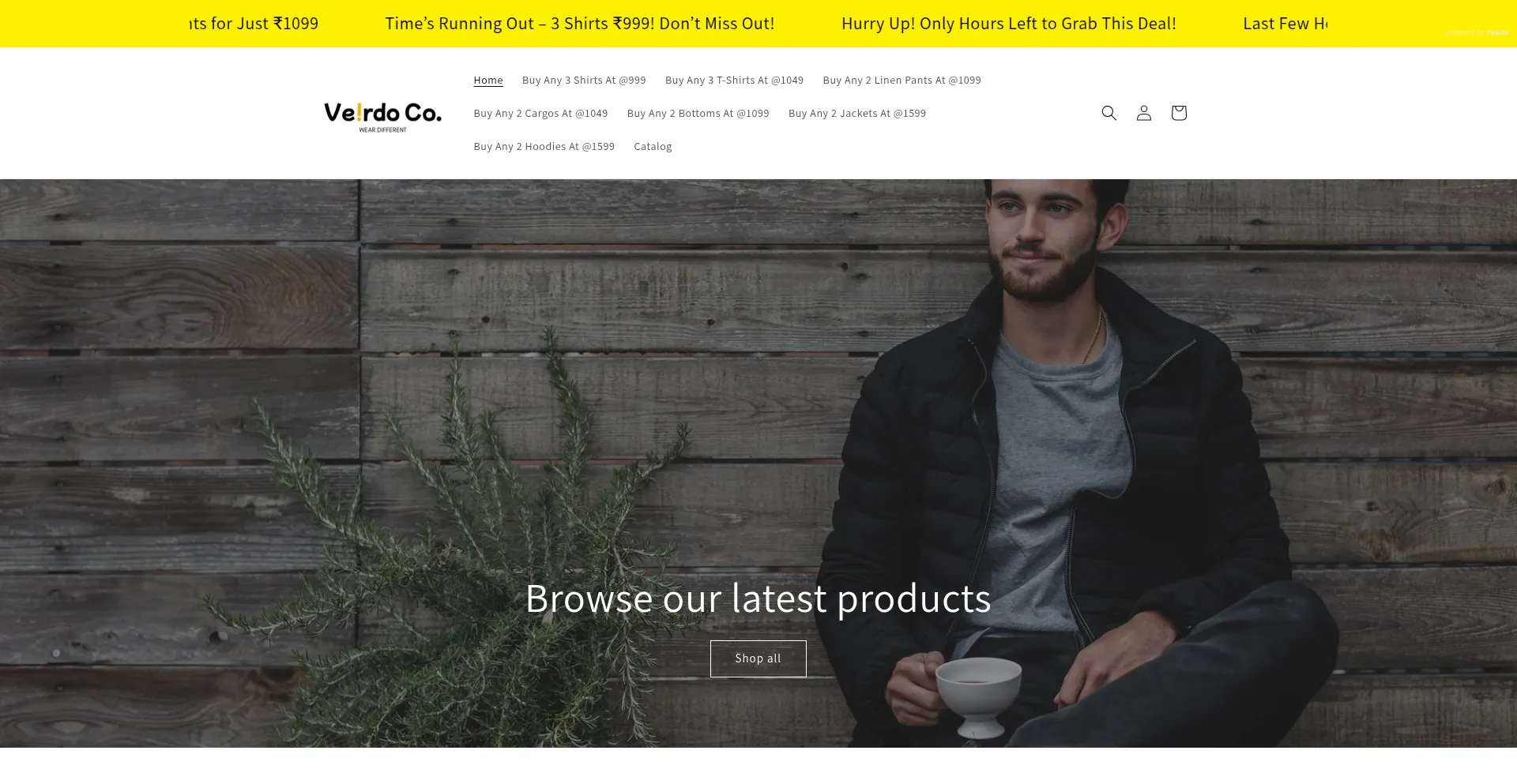 The veirdoclothing.myshopify.com website utilizes free e-commerce platform solutions, which may indicate cost-conscious operations but could also suggest limitations in security features, customer support, or advanced functionality compared to enterprise-grade solutions.
