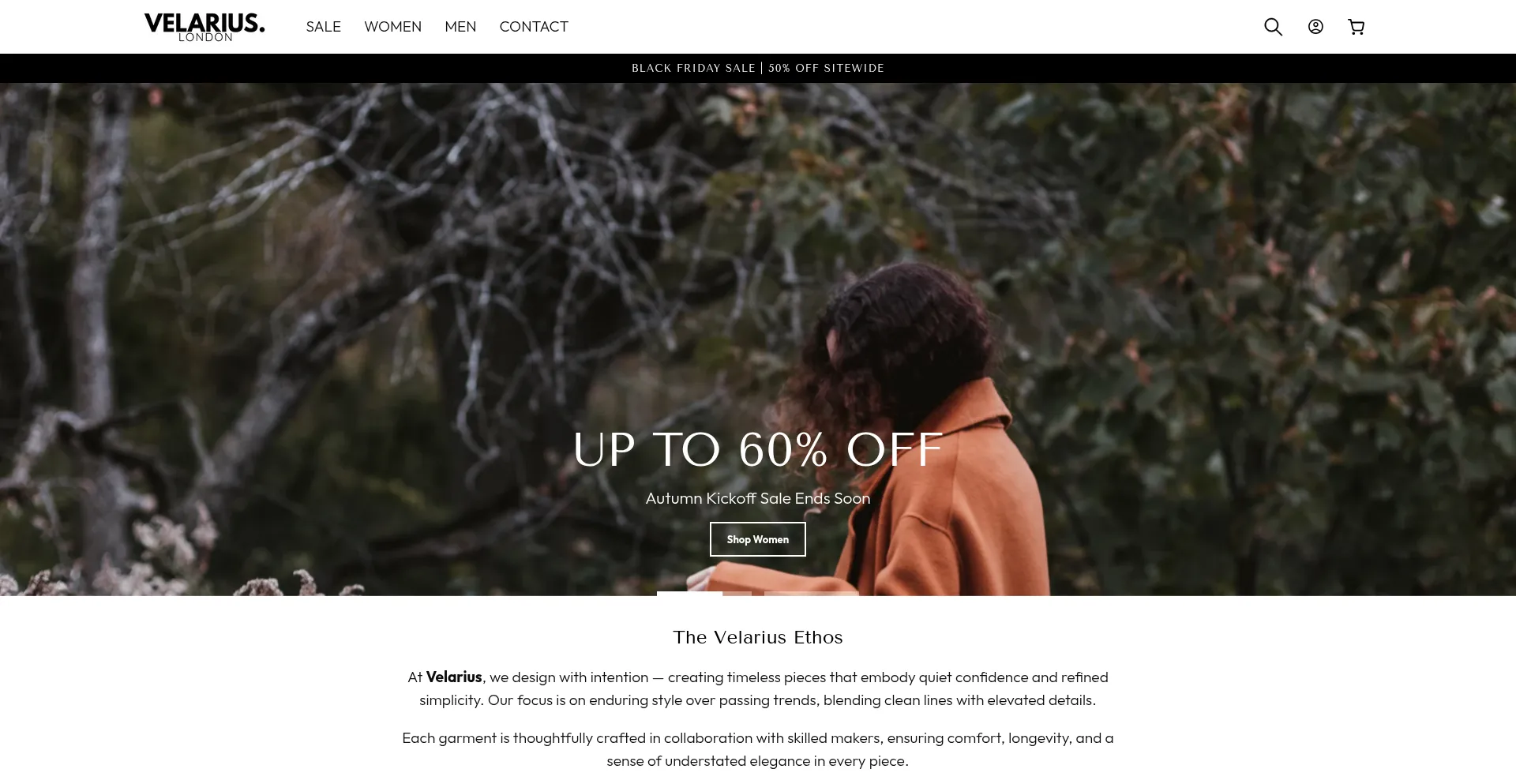 Analysis indicates that velariuslondon.com operates as an e-commerce platform facilitating online transactions for goods or services. The website implements shopping cart functionality, payment processing systems, and product catalog features typical of commercial retail operations.