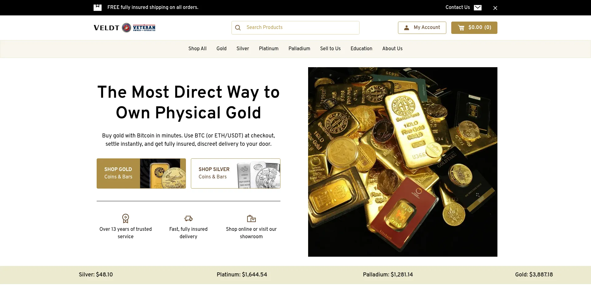 Buy Gold With Bitcoin - FREE Insured Delivery - Veldt
