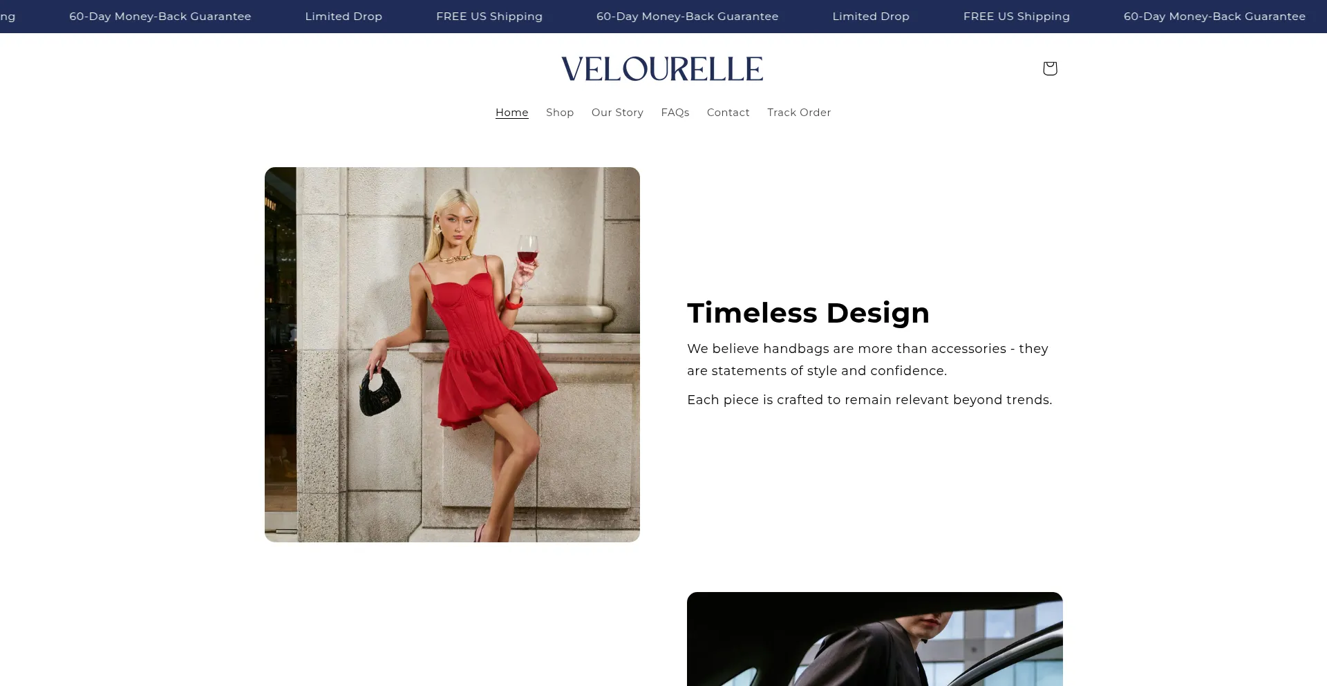 Analysis indicates that velourelle.com operates as an e-commerce platform facilitating online transactions for goods or services. The website implements shopping cart functionality, payment processing systems, and product catalog features typical of commercial retail operations.