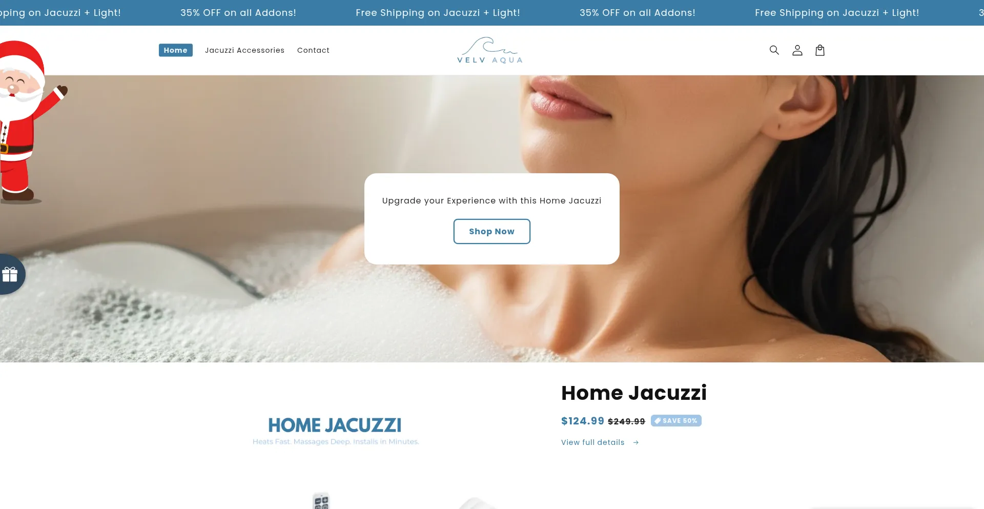 Analysis indicates that velvaqua.com operates as an e-commerce platform facilitating online transactions for goods or services. The website implements shopping cart functionality, payment processing systems, and product catalog features typical of commercial retail operations.