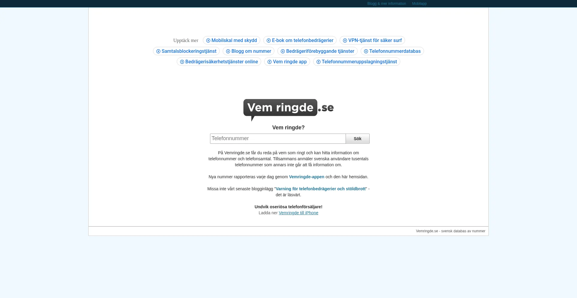 Vem ringde? undvik bedrägerier och anmäl nummer. Hela sveriges varningslista med telefonnummer och telefonförsäljare som uppdateras varje dag.