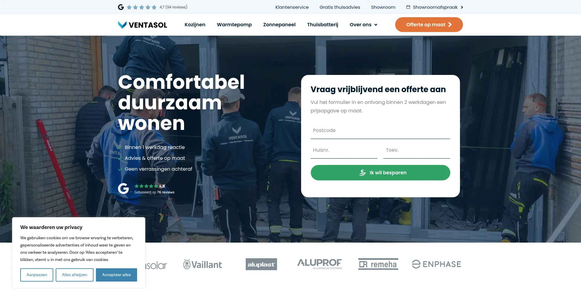 Ontdek onze kozijnen, warmtepompen en zonnepanelen en bespaar vandaag nog op energiekosten en verhoog het comfort van je woning met Ventasol.