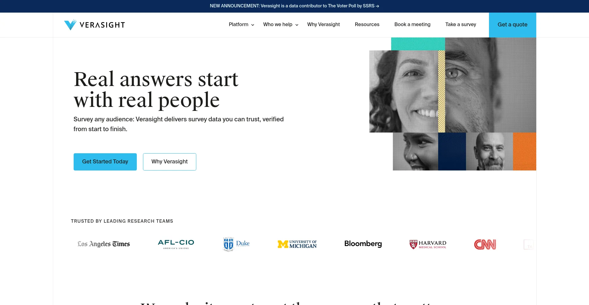 Verasight delivers high-quality, verified survey data with expert project management and technology to help you reach any audience confidently.
